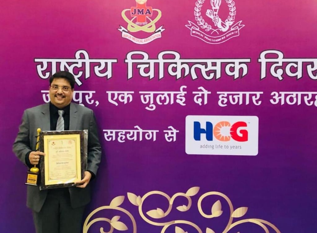 Awarded by Rajasthan Medical Council for his Extraordinary Performance in Respiratory Diseases and Tuberculosison National Doctor’s Day: 1ST July 2018