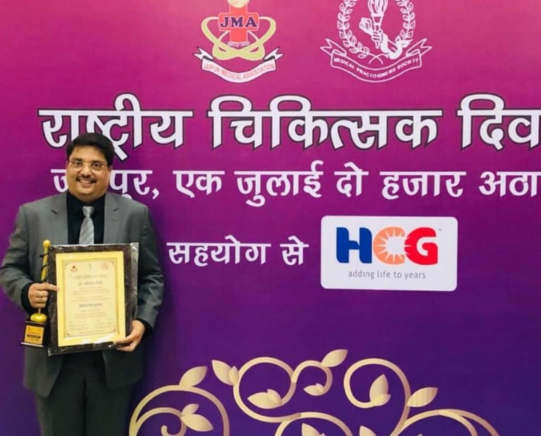 Received Life Time Achievement Award on National Doctor’s Day: 1ST July 2018 by Jaipur Medical Association